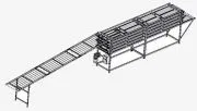 Транспортёр наклонный сетчатый (по краям две цепи роликовые). Имеет следующую принципиальную особенность – это возможность расположения ленты под различными углами подъема в зависимости от нужд конкретного процесса. Обычно диапазон наклона варьируется от 20 до 40 градусов и определяется спецификой транспортируемых грузов.